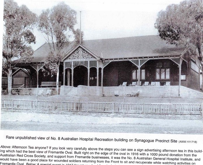 Campbell: The pensioners barracks served on as an old men's home, an immigrants hostel, and then a military hospital [the Base Hospital] through the first world war years of 1914-1918. ... The building has gone, but the retaining wall to South Terrace remains in front of a 1970s elderly peoples’ centre. (Campbell 2017: 18; the last sentence refers to the Stan Reilly Centre, demolished in 2018 to make way for what is a carpark in 2021, but is soon to be a new police station.)