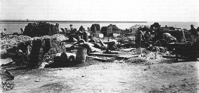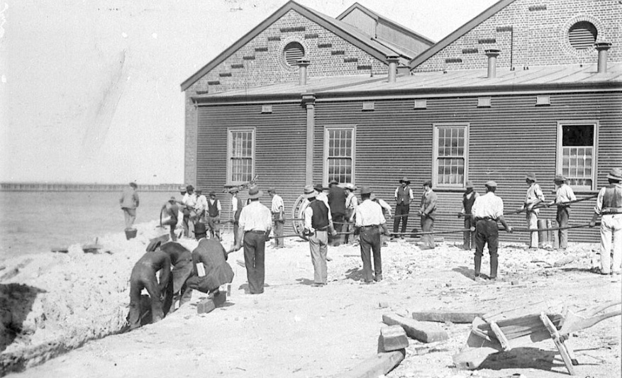The Power House was constructed of brick and an attached timber lean-to section extended from most of the length of the eastern wall. The chimney stack was of brick and, until it was dismantled in the early years of World War II, was a landmark which visually delineated the beginning of South Mole.