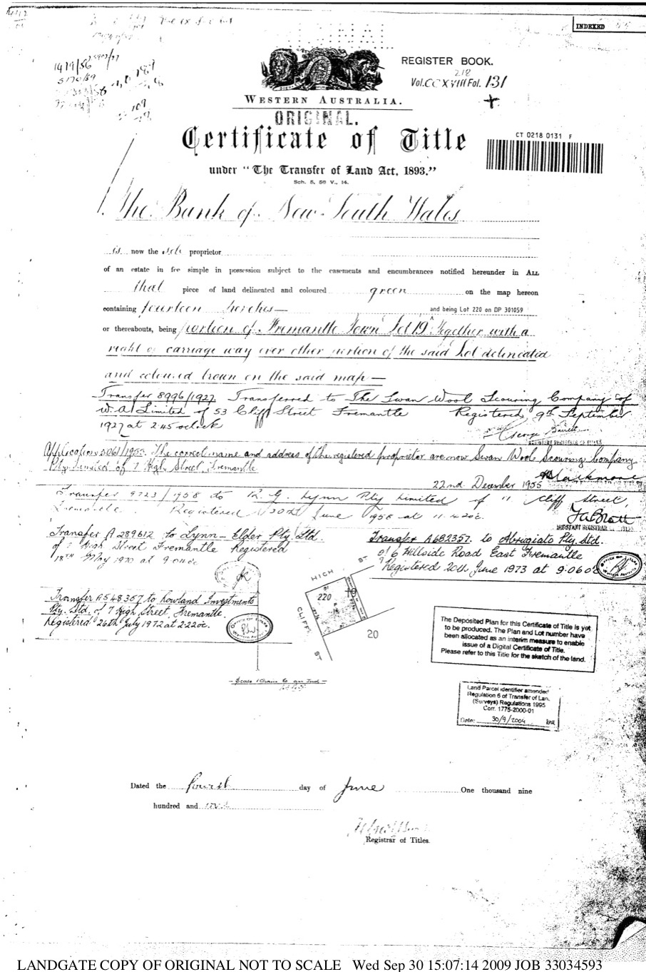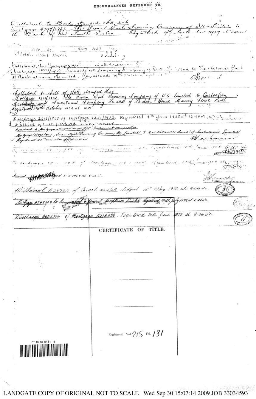 The title deed (below) shows that in 1927 the property was purchased by Edmond Antoine's company, the Swan Wool Scouring Company, and continued thus until 1958 (although Antoine had died in 1936).