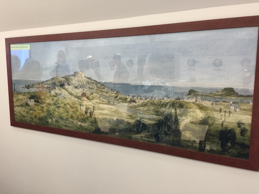 This is one of the artworks on the wall of the boardroom ... well, an enlarged reproduction of an artwork. I doubt that it's the original - which I believe is in the Mitchell Library in Sydney. It's A Panorama of the Swan River Settlement 1830-32, by Jane Currie.