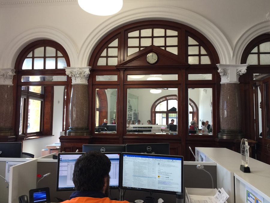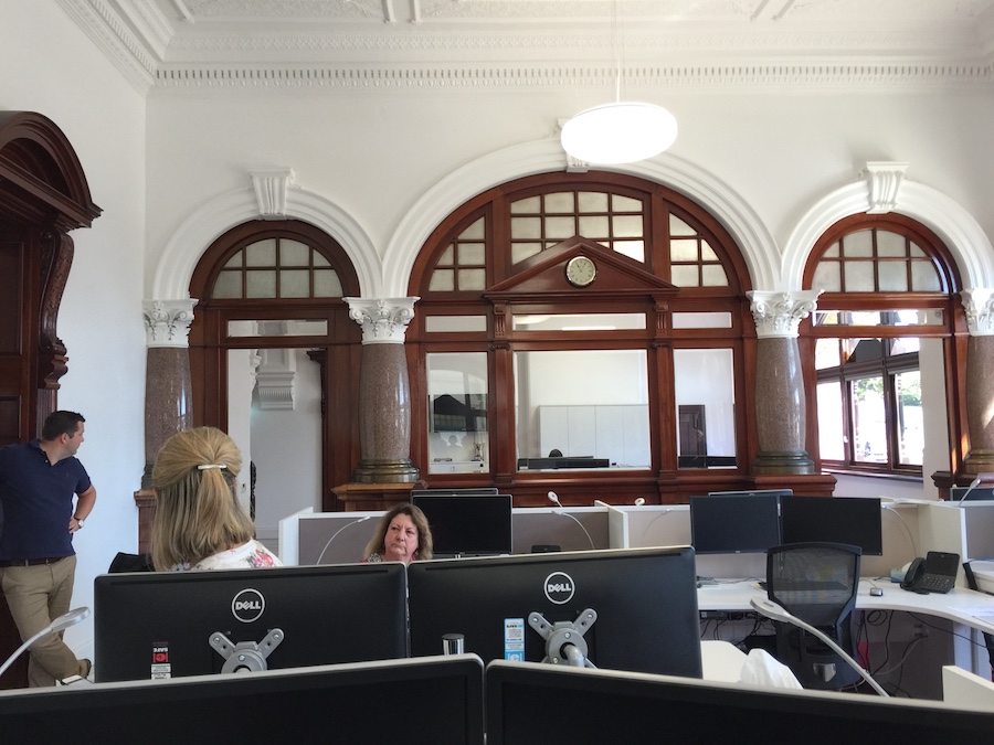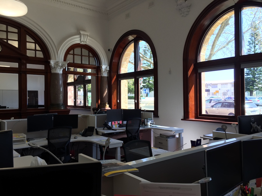 Looking at the eastern side of the main shipping chamber. This has looked like this (minus the computer screens) since it was occupied by the Dalgety company from 1902.