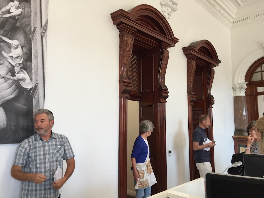 The September meeting of the Fremantle History Society was a tour of the 1902 Dalgety building, the offices of the Mediterranean Shipping Company, in a complex which now include Murray Slavin’s new building at 11 Cliff St. We were very fortunate to have not only MSC manager James Granville, but also Murray Slavin himself, with Stuart Neal from his office. Between the three of them, with convenor Greg Luke, they provided a wealth of information about the building complex. Here are some photos from the event of 16 September 2017.
