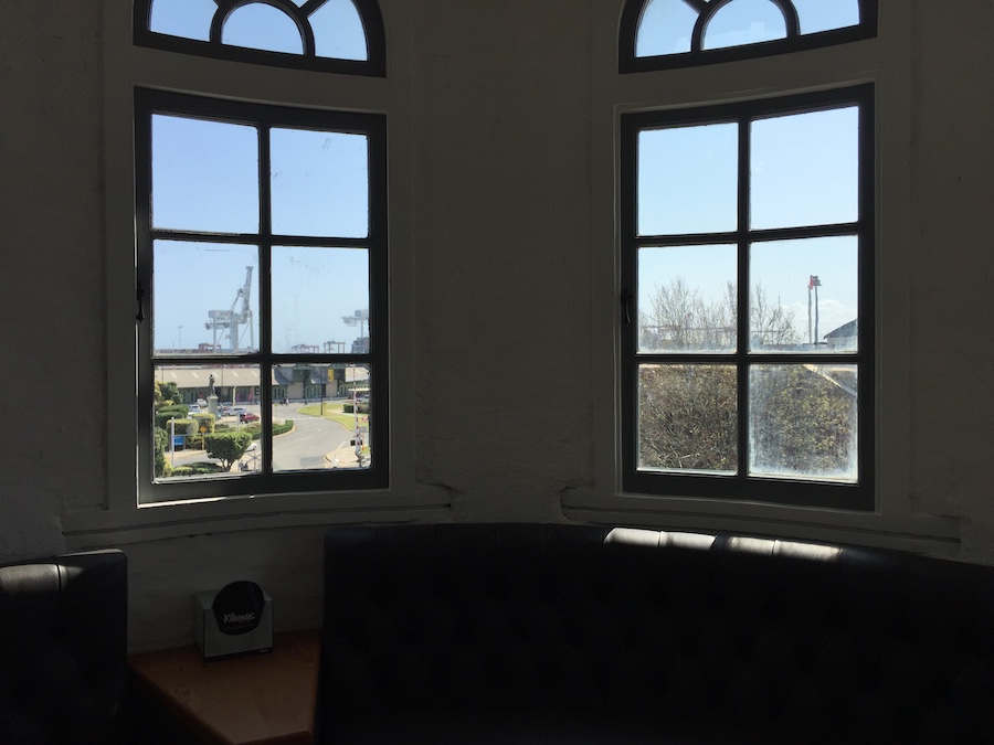 One of the windows on the third level which are a feature looking up from the street. This one is looking north. That's the former weighbridge down there, at the entrance to South Wharf (Victoria Quay). This is in one of the three small meeting areas just off the boardroom.
