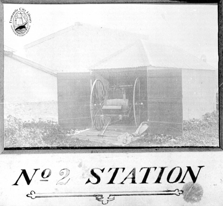 The No. 2 Station. Fremantle Library ref. no. 1983Q. The Library's note does not conjecture as to the location of this shed. It merely states that the photograph is 'part of a presentation of 18 mounted photos made to Fremantle Municipal Council by the Fremantle Fire Brigade in 1894'.