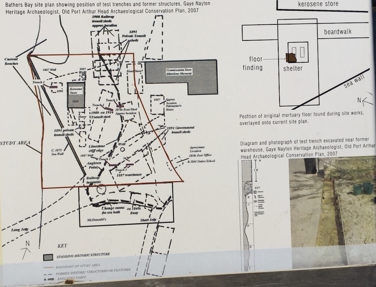 As the colony's first port, Bathers Bay was the site of numerous buildings including Harbour Master's facilities, Customs House and bond stores. Today only the Commissariat Store (1852), some of the Long Jetty piles (1873) and the Kerosene Store (1881) remain visible. Less visible clues, however, lie beneath the ground.