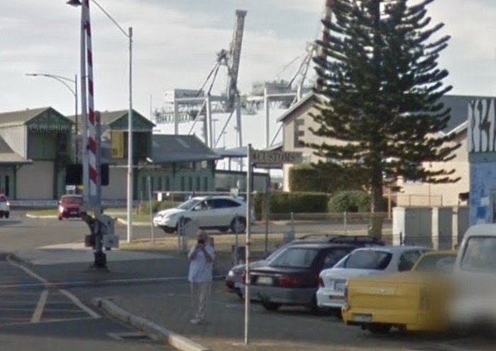 I happened to be able to catch the Google Maps car near the weighbridge. The image below was taken by the car, and shows me taking the photo - on an iPhone 5 on 21 August 2014.