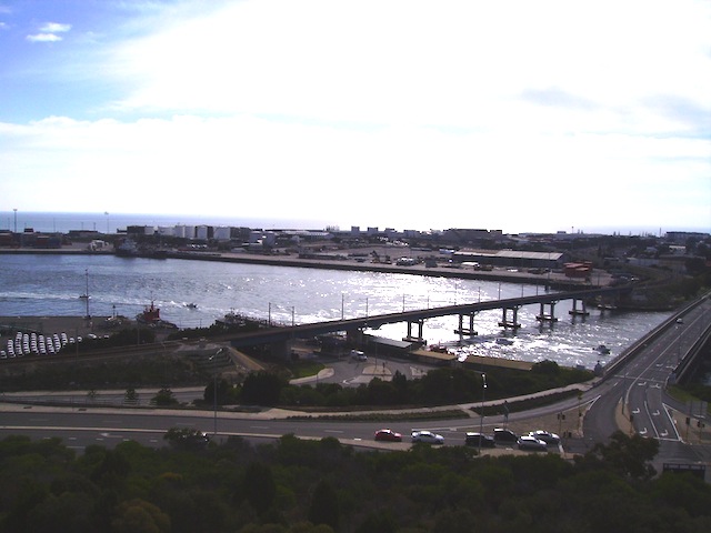The eastern end of the Port of Fremantle, featuring the rail bridge. My cheap camera didn't deal well with all this light.