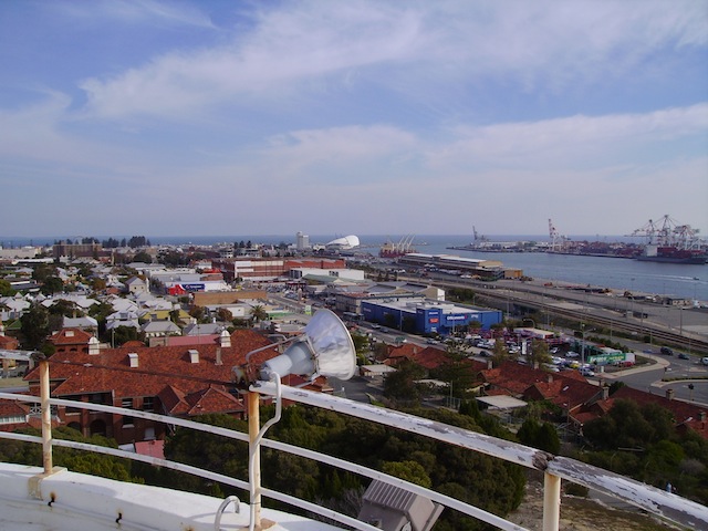 The Signal Station was opened to the public for one hour 1330-1430 on 2 June 2012 as part of Fremantle Heritage Week. I almost missed it, but got there with ten minutes to go - just time to take this and the following photos from the top deck. This one is looking north of east towards the City of Perth on the horizon.