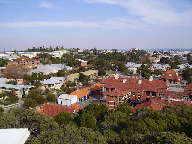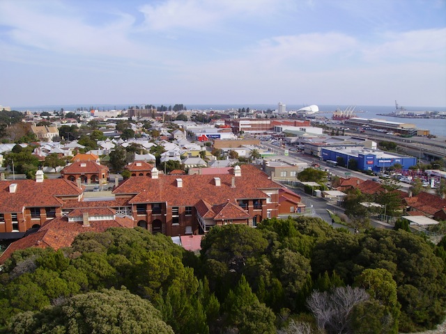 The City of Fremantle in 2012, with the Army Museum in the foreground. The tallest building in sight is the horrible block of flats called Johnson Court. Much of this is set to change, especially along Quarry and Queen Victoria Streets, so enjoy the view while you can.