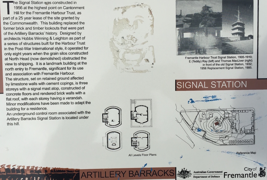 Cantonment Hill is so called because there was a cantonment (military barracks) nearby. The road now called Queen Victoria St was formerly Cantonment Road, also indicating the promixity of the barracks. The Artillery Barracks (now Army Museum) in the banner photo above was built 1910-13. The Signal Station in the centre was in use only 1956-64 when the Fremantle Ports building superseded it.