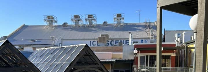 This photo (cropped) by Tess Thompson (thanks!) was posted to Facebook in 2023 and shows the ice rink signage still visible.