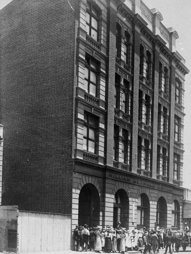 Detmold Ltd was a printing firm founded in 1899. Later it became Spicers. This building was demolished by the Fremantle City Council in September 1970. The site, together with the site of the former Brockhoff building (all now a carpark), was acquired 2021 by Fiveight, a company of Tattarang, part of the Andrew Forrest empire.