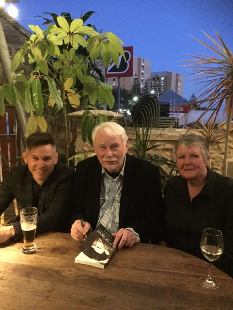 Three mayors: Brad Pettitt, Richard Utting, Jenny Archibald. Richard is signing a copy of his autobiography, Out of Sight: Reflections on an Accidental Life.