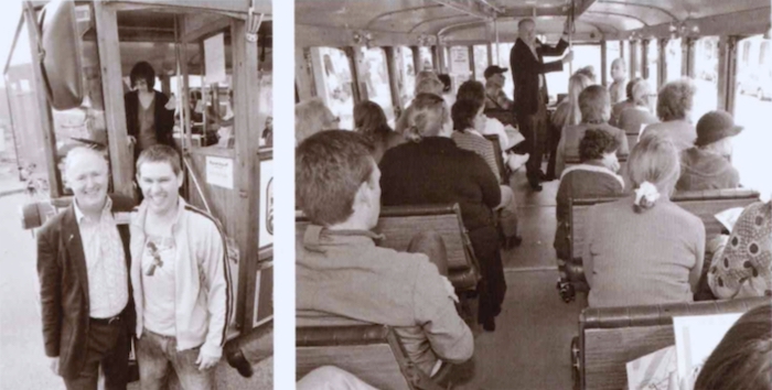 Right: Don talking to his passengers about saved buildings. [Michael Wearne]