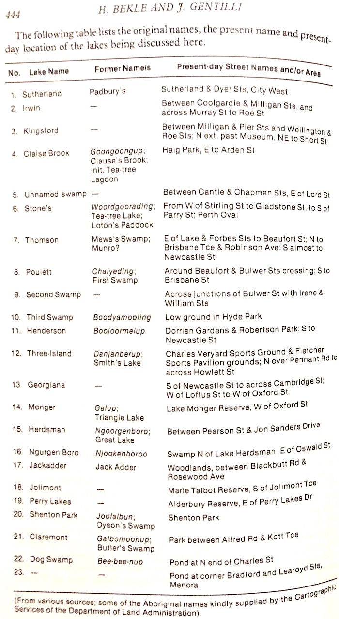 Bekle H. & J. Gentilli 1993, 'History of the Perth lakes', Early Days, vol. 10, part 5: 442-460.