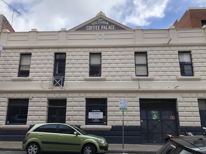 The Victoria Coffee Palace at 11 Pakenham St was built in 1895. A coffee palace was a hotel which did not sell alcoholic beverages. My 2020 snap.
