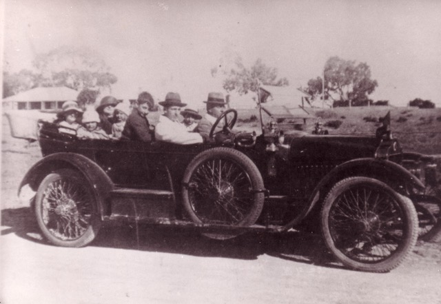 The Antoine family in their Minerva, c. 1922. The driver is the eldest son, Jean. His father Edmond is next to him. Alice is in the rear in black, with hat. [Minerva was a Belgian firm active from 1902 to 1938 which was a prominent manufacturer of luxury automobiles. The company became defunct in 1956. Wikipedia.]