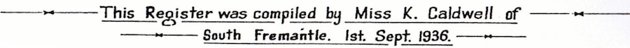 Caldwell, Kate 1936, Burial Records Appertaining to Alma Street and Skinner Street Cemeteries, Fremantle, from Year 1831 onwards, compiled by K. Caldwell [manuscript] - available from City of Fremantle Library