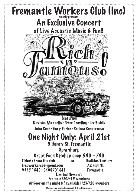 See also: Rich'n'Famous Live at the National Folk Festival 1992 (on vimeo); The Best Song in the World (the album).