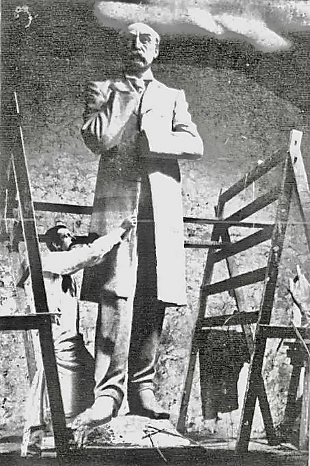 Second photo of Porcelli working on the O'Connor monument from The Mirror, March 1910.