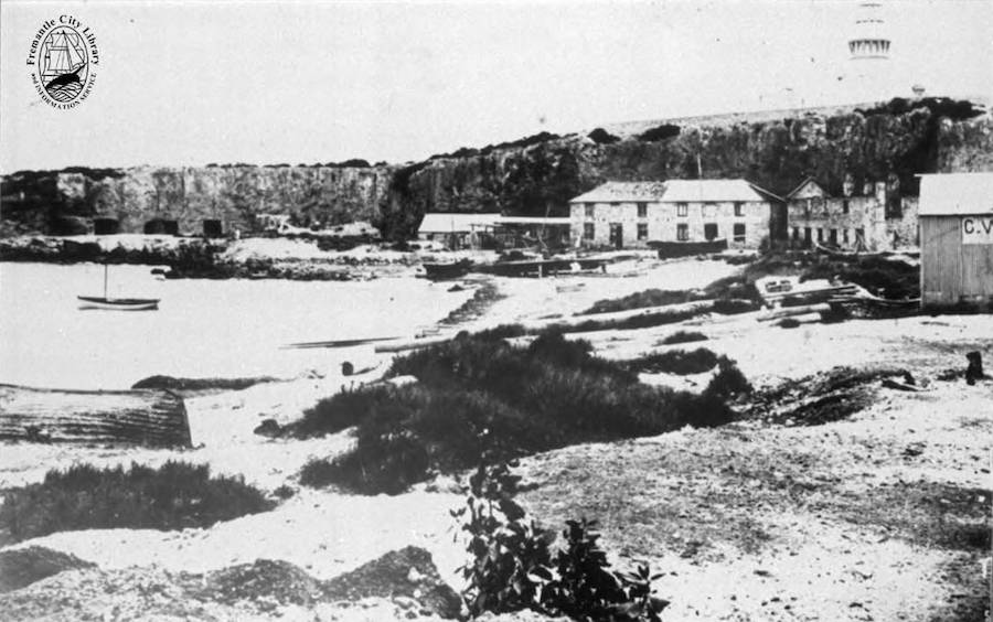 Fremantle Library photo #2034A by Stephen Stout, c. 1890. Caption: The second lighthouse (1876/1878-1905) built on Arthur Head is to the right. Below is the TW Mews shipyard in Bathers Bay, established between 1840 and 1860. Next to the right is the abandoned building of the Fremantle Whaling Company, demolished in the 1890s.