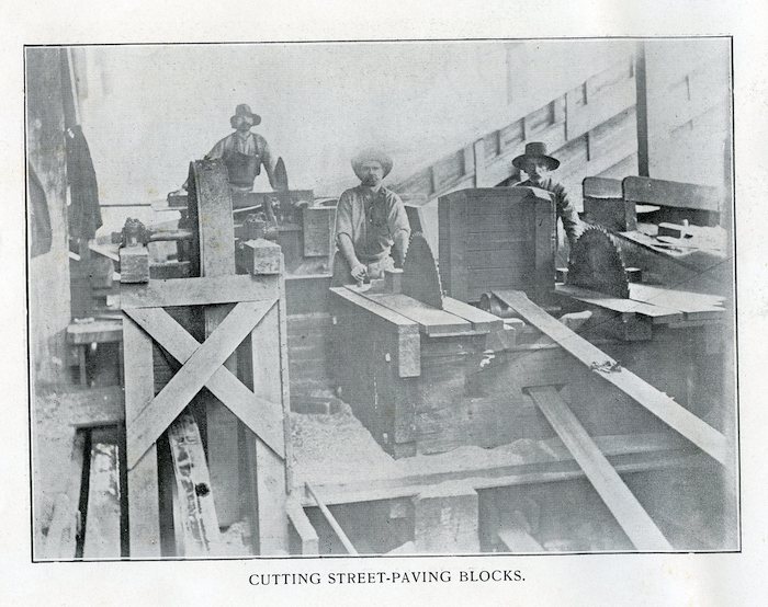 Cutting Street Paving Blocks: H. Webb photo from “A Glimpse into the Jarrah Timber Industry in Western Australia” c1905 (Dowson collection)