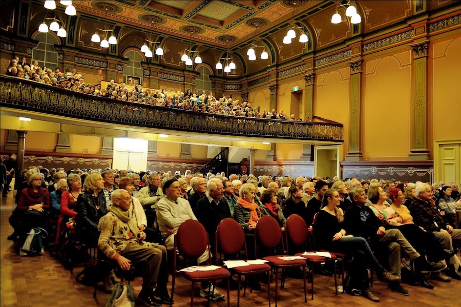 NDA has the Drill Hall but the ambience, stature and crucially acoustics are not the same as in the town hall. FCO was the first to perform at the Naval Store. It’s a good size with reasonably good acoustics and the noise intrusion isn’t as bad as in B Shed. There are no chairs however and hiring them is quite expensive. B Shed is in a great location but with disturbing noise intrusion and exposed to the elements without chairs, it’s not really suitable for classical music. St Patricks has good acoustics and a good size and FCO has performed there many times while the town hall was unavailable. St John’s has lovely acoustics too but is just not quite big enough. It’s very suitable for chamber music.