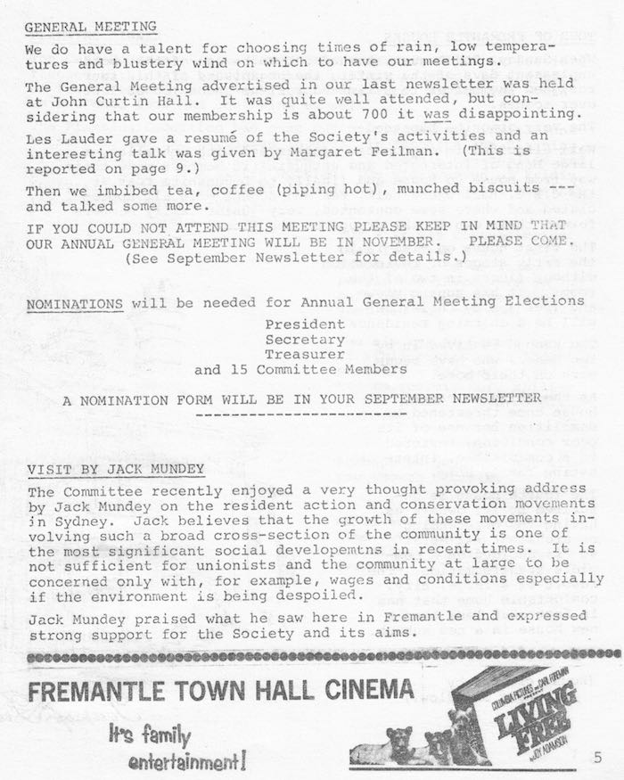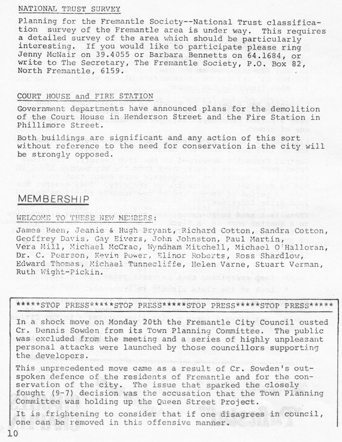 Fremantle Society > Newsletter > August 1973