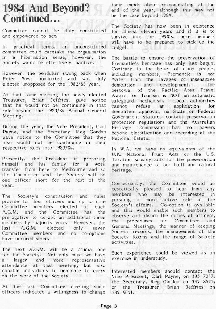 Fremantle Society > Newsletter > 1983v11n3