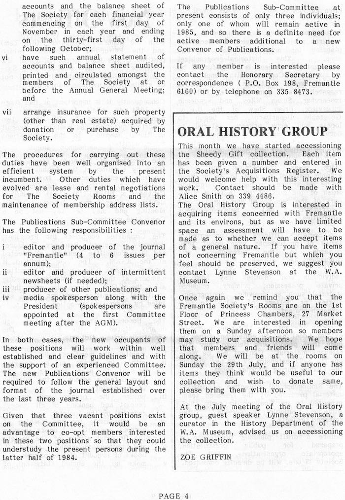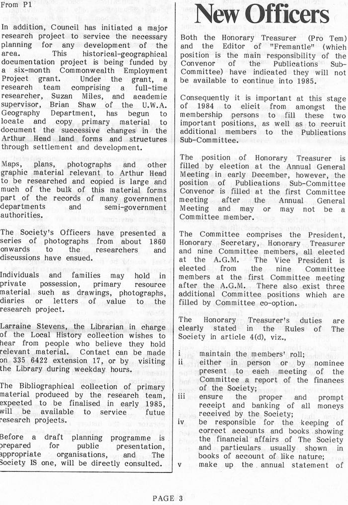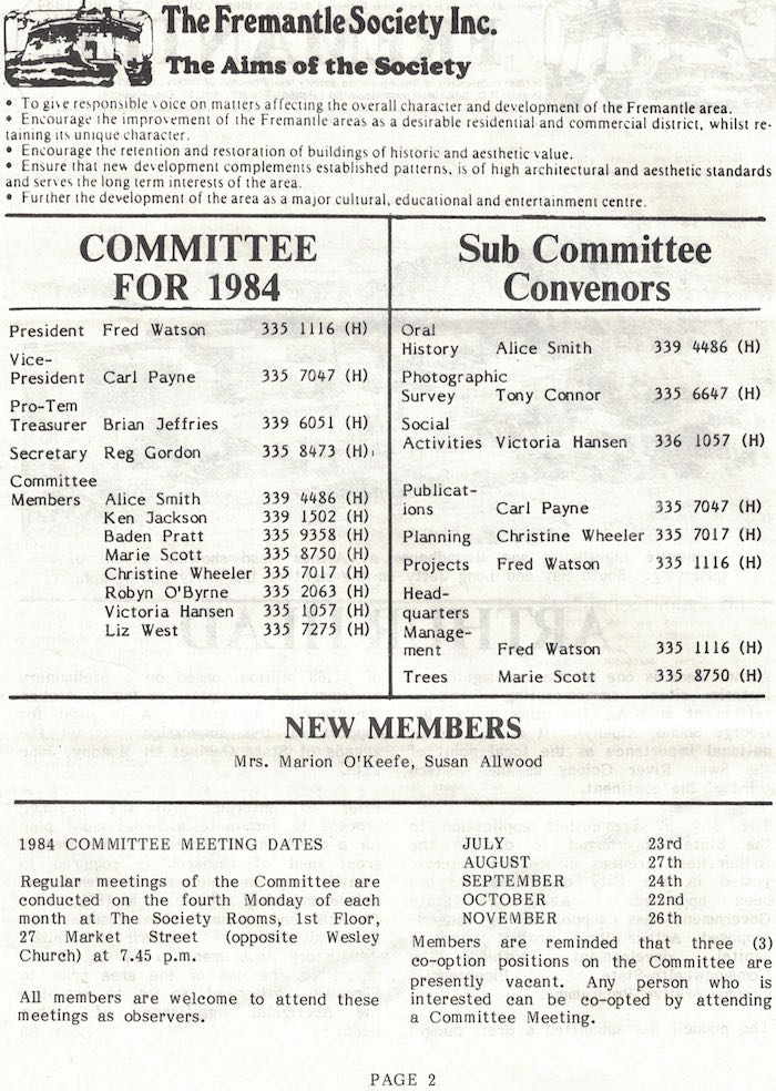 Fremantle Society > Newsletter > 1984v12n3
