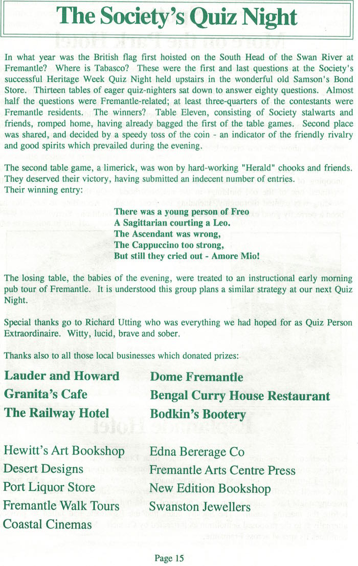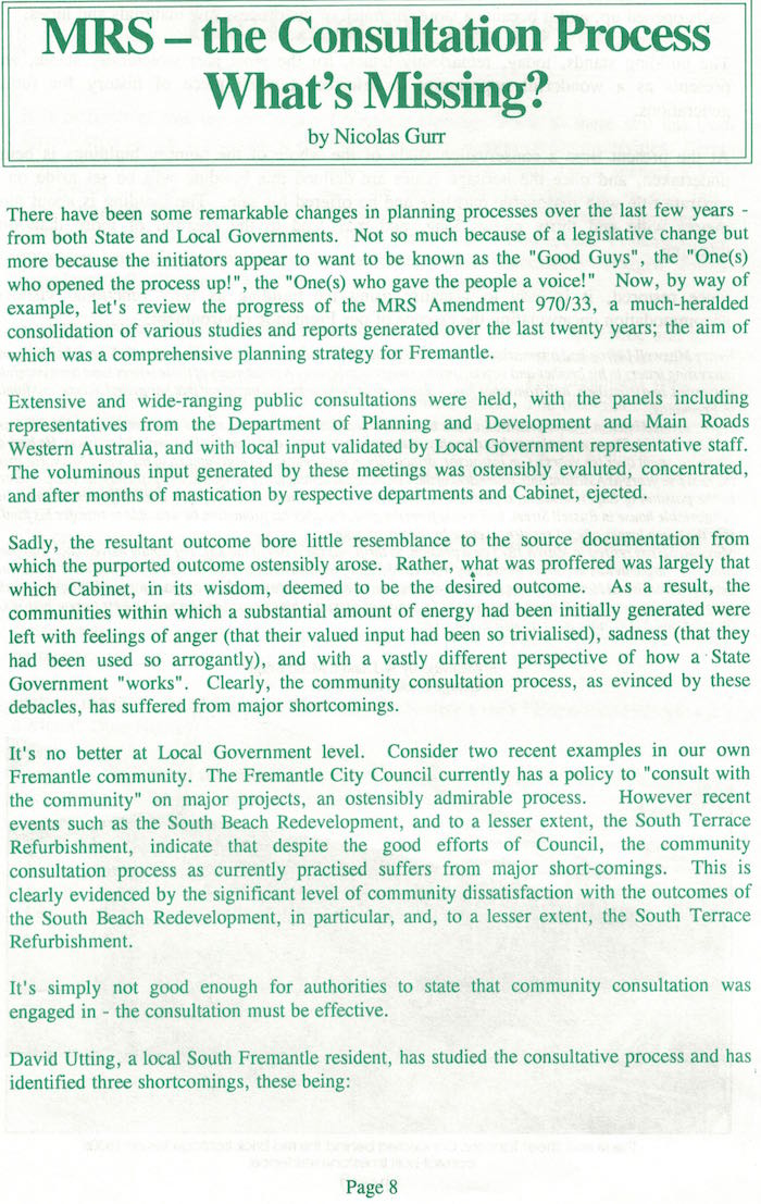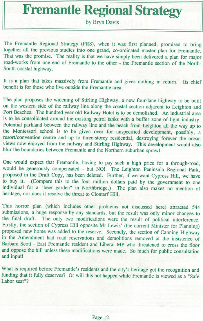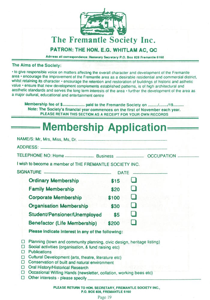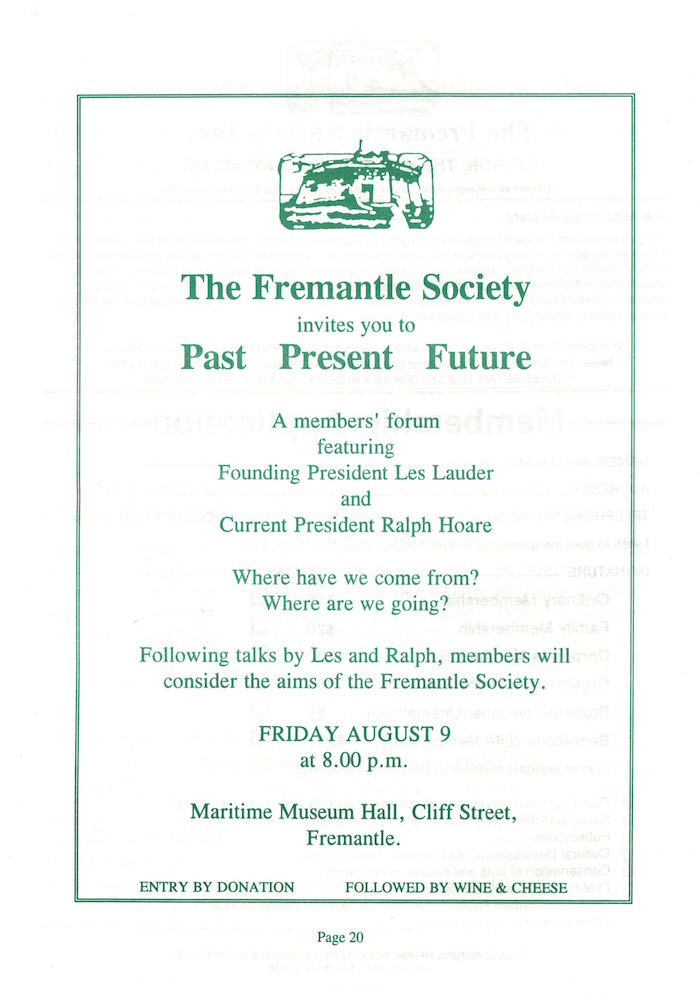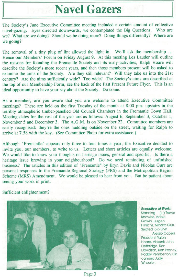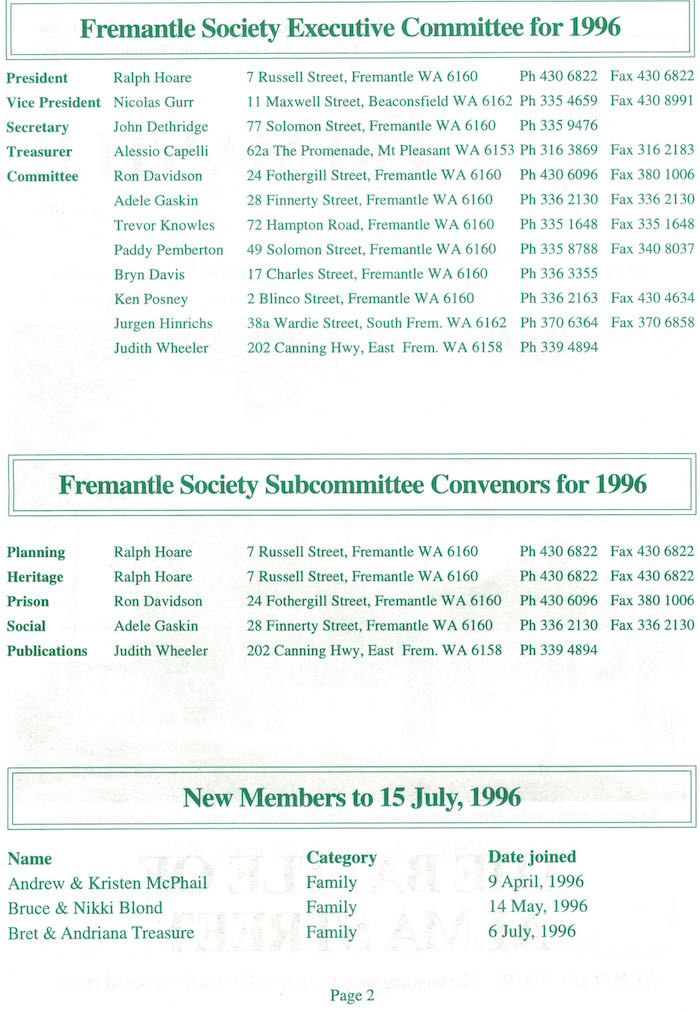Fremantle Society > Newsletter > July 1996