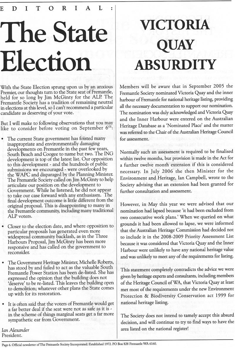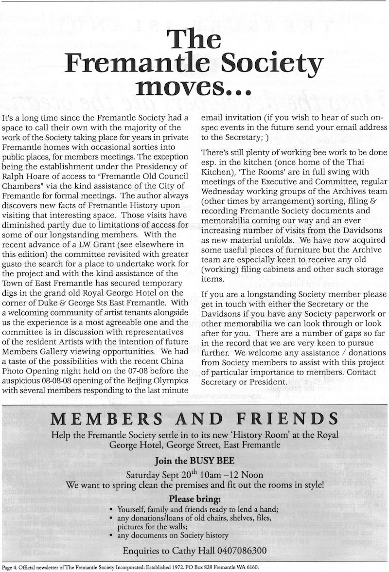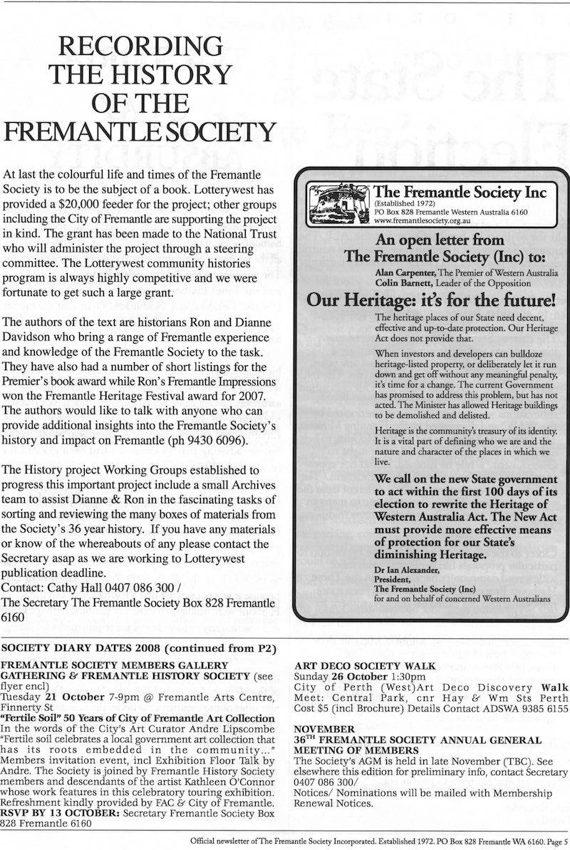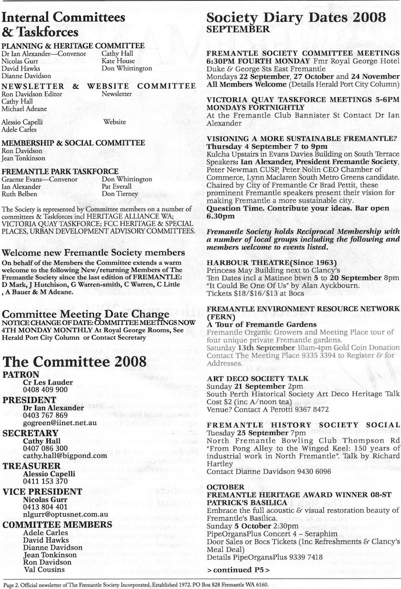 Fremantle Society > Newsletter > September 2008