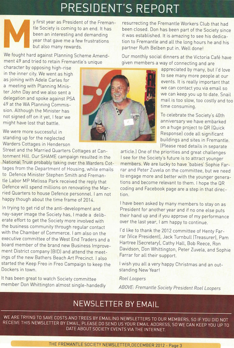 Fremantle Society > Newsletter > December 2012