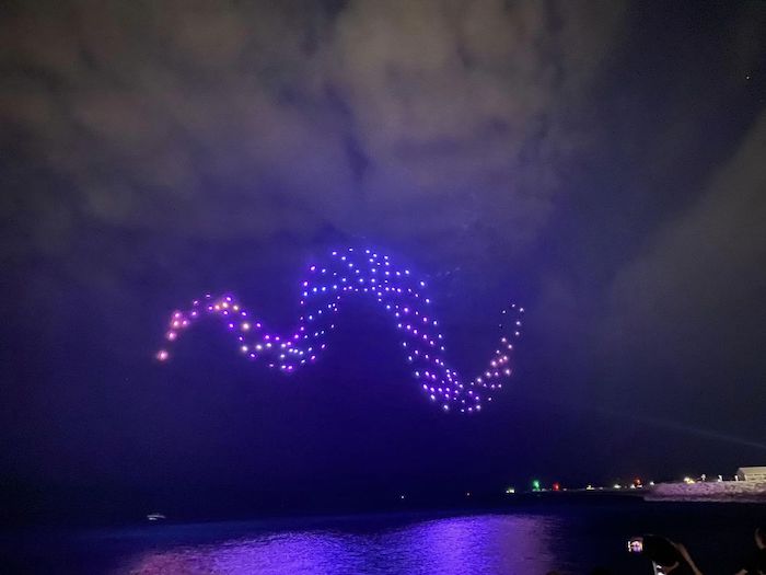 The Fremantle Biennale’s acclaimed drone light and sound experience, First Lights, returns in 2023 with Kooranup, a sequel to the stories shared through Moombaki in 2021. This epic spectacle of light, movement and sound will again transform the night sky with 160 drones taking flight over the stage of the bilya (river) and wardan (ocean).
