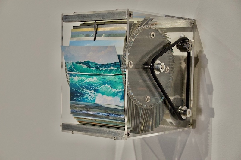 Rob Kettels’ installation delves into the legacy of maritime time-balls – now obsolete navigational instruments – which served as signalling devices for mariners beginning in the early 19th century. Inspired by a historical incident in 1911 when Fremantle’s time-ball malfunctioned, dropping at the incorrect time, Rob’s artwork unfolds in a fictional narrative portraying a ship’s disorientating return to Europe with its timepiece mistakenly set. Electromechanical assemblages and animated sequences playfully expose and challenge settler colonial notions of mastery and control of time.
