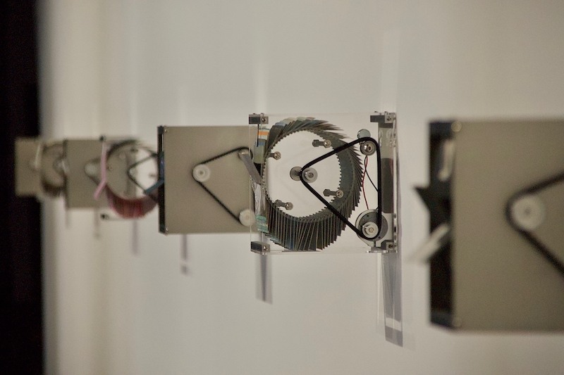 Bori Benko’s Songs to the Universe makes visible the vibrating forces beyond our perception. Everything in our world, in the digital landscape and within our bodies, hum with vibrational energy. Bori captures these different frequencies and unique tunes in her moving mechanical sculptures. Revealed in this exhibition are the harmonies, patterns and travelling waves that are usually invisible to the human eye.