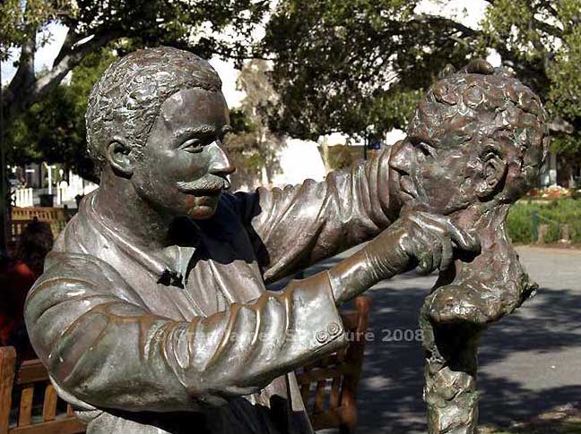 C.Y. O‘Connor Memorial. Designer and sculptor: Pietro Porcelli. C.Y. O’Connor was a great civil engineer who did not live to see all his projects completed. He was borne down by the pressure of work and attacks on him by some sections of the press and some politicians, particularly by their assertions that the Goldelds pipeline would fail. Early on the morning of 10 March 1902 he set out on his customary early morning horse ride along the beaches south of the port. He rode past South Beach along the shore, dismounted, waded into the sea and shot himself with a pistol. A metal sculpture [by Tony Jones], an outline of O’Connor’s figure, now stands in the sea where he committed suicide.