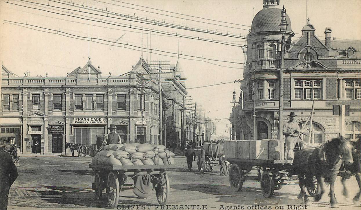 The 1902 Dalgety Building, aka Elder building, Wilhemsen building, Barwil House, and now MSC building, on the corner of Cliff and Phillimore Streets was designed by J.J. Talbot Hobbs, the land having been purchased from Perth Mayor George Shenton between 1886 and 1888. A photo of the first buildings on the site - the Shenton house complex, including stables - is to be seen here.