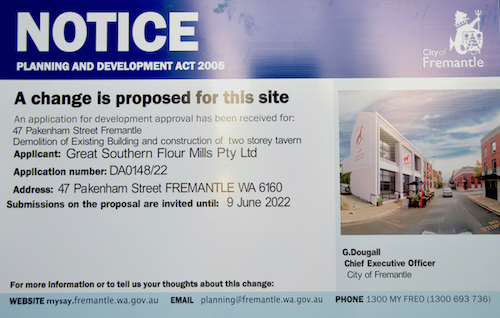 The West Australian has written about the proposed tavern in approving terms (8 June 2022).