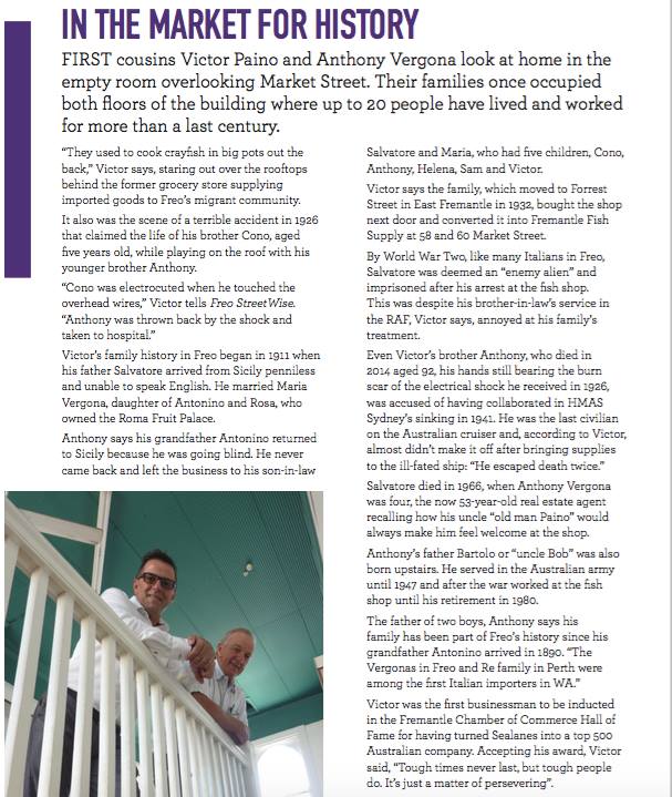 Thanks to Carmelo Amalfi for permission to publish the page from Freo StreetWise for April 2016.