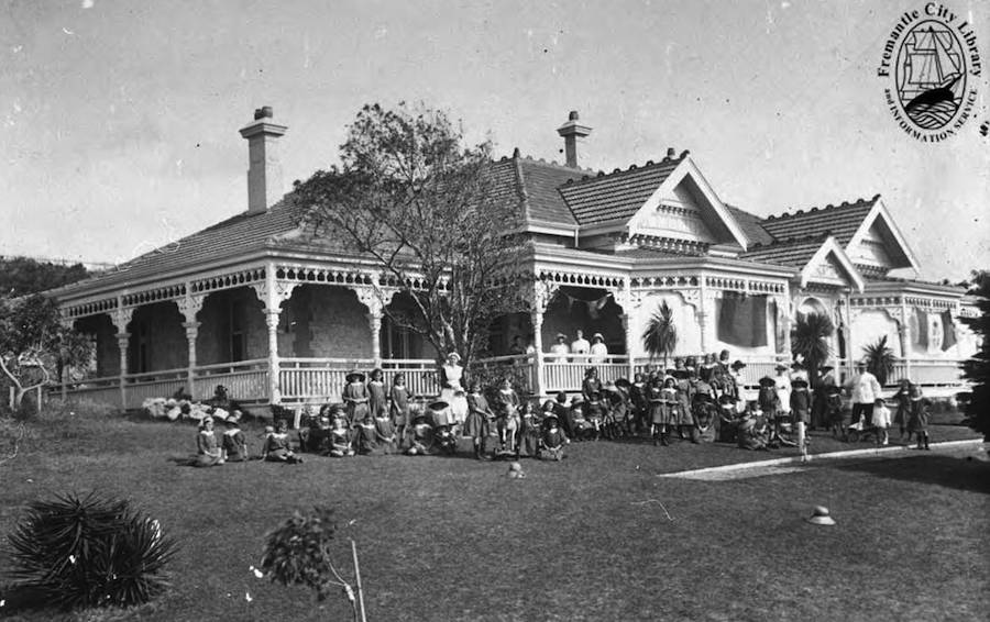 Residence built for James Lilly, shipping magnate; later (1914) home to Capt Frank and Blanche Biddles. Later, it was available for functions such as wedding receptions: I attended Grant Patterson's wedding there in 1964 or 1965. Just in time! In 1966 it was demolished to make way for an ugly block of flats and a petrol vending station. There's now a block of townhouses on that corner. Photo #4625, 1916, from the Fremantle Library Local History Collection.