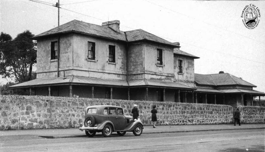 Library: This residence, known as Marmion Cottage, was built in 1852. Lt. R.E. Wray was in residence in the 1850s and Lady Barker (Broome) was "at home" here the first Monday afternoon in the month in the 1880s. The property was used by Fremantle Hospital in the 1930s and demolished 1939. Taken 20 April 1938. Text and 1938 photo #2048B from Fremantle City Library Local History Collection.