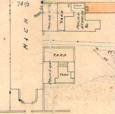 The first police stations/quarters (and water police) were at the western end of High Street, near the Whalers Tunnel under Arthur Head; two photographs are on the page for the W.F. Samson house, as it was next door. I should think the officers used the Round House as their lockup when required, as it was just up the stairs to the west.