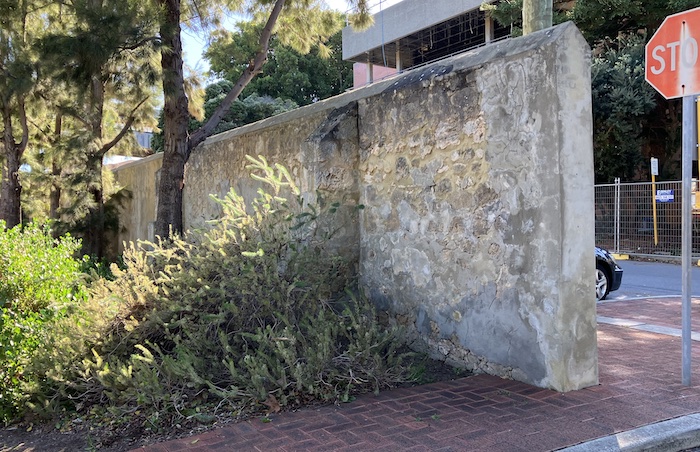 This (above) is the Alma Street end of a convict-built wall which used to extend up what was formerly Attfield Street, possibly as far as Fothergill Street. It now terminates about one-third of the way up.