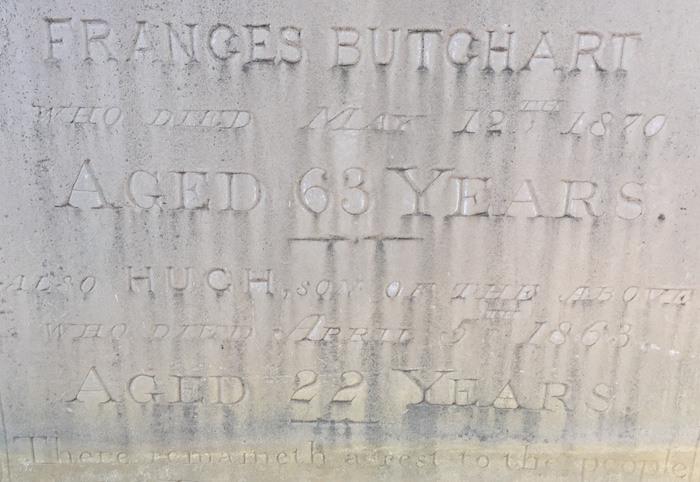 105. Frances Butchart d. 1870 @ 63 & Hugh Butchart d. 1863 @ 22