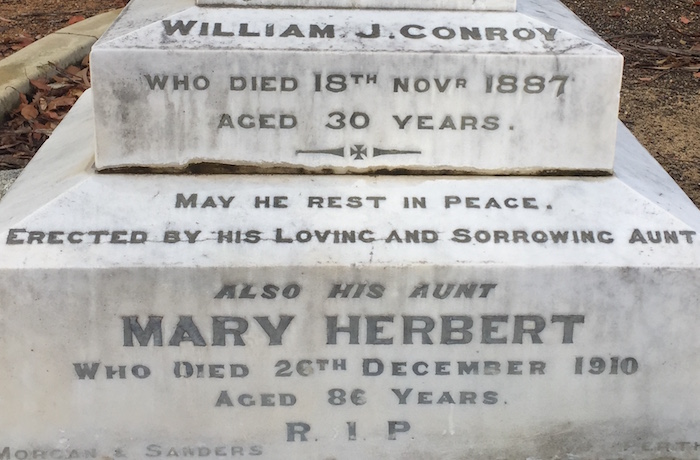 113. William J. Conroy d. 1887 @ 30 & his aunt Mary Herbert d. 1910 @ 86