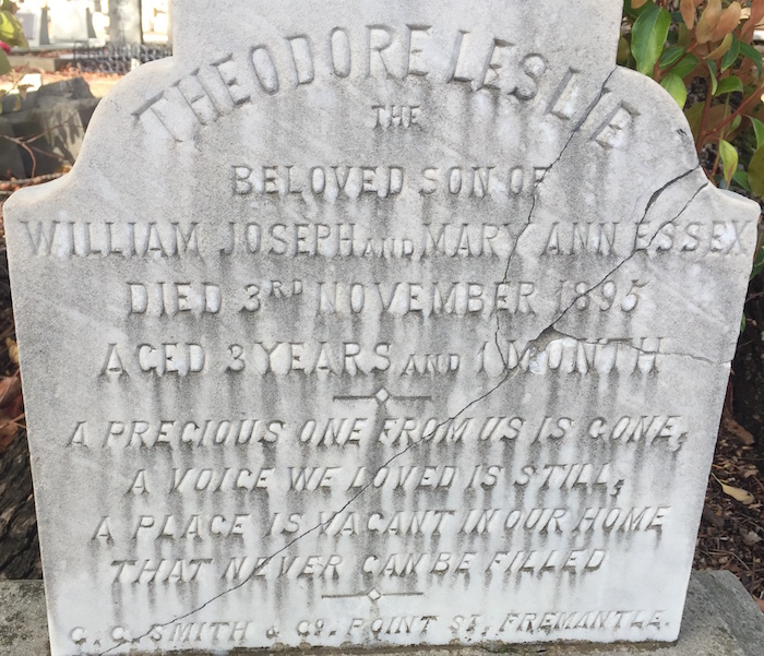 114. Theodore Leslie Essex son of William Joseph and Mary Ann d. 3 Nov 1895 @ 3