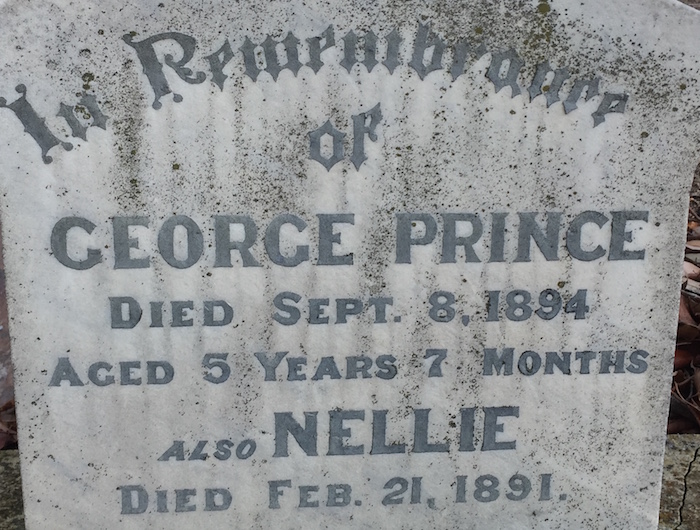 115. George Prince d. 8 Sept 1894 @ 6 & Nellie (his sister?) d. 1891