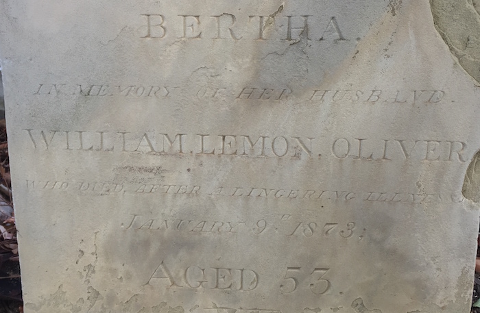 117. William Lemon Oliver d. 9 Jan 1873 @ 53 'after a lingering illness' husband of Bertha