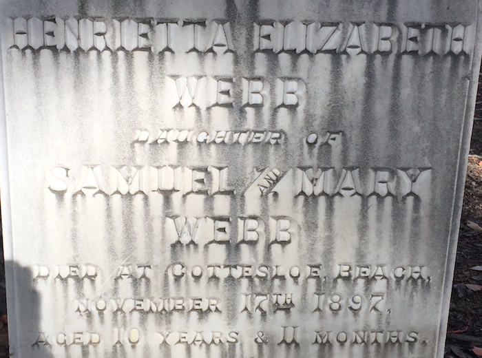 119. Henrietta Elizabeth Webb d. 17 Nov 1897 @ 12 at Cottesloe Beach daughter of Samuel & Mary Webb